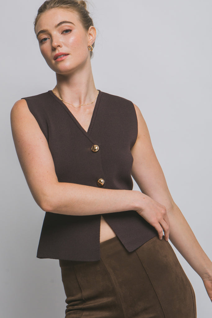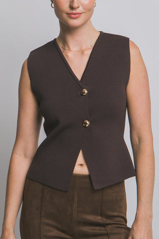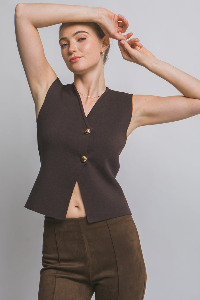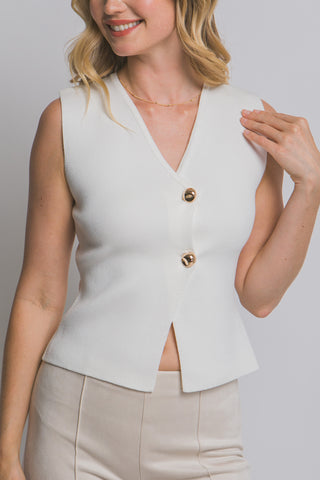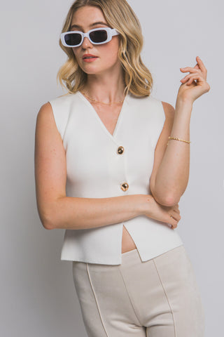Blusa Chaleco 2 botones sin mangas elegante para mujer – Escote en V, botones dorados, corte moderno | Outfit casual o formal