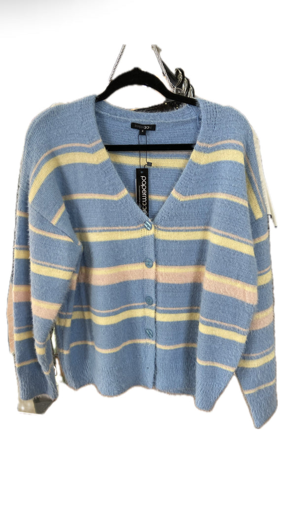 Cardigan suéter de Dama Rayas Azul