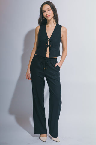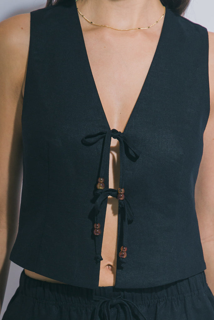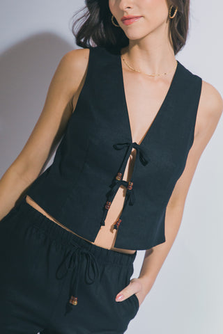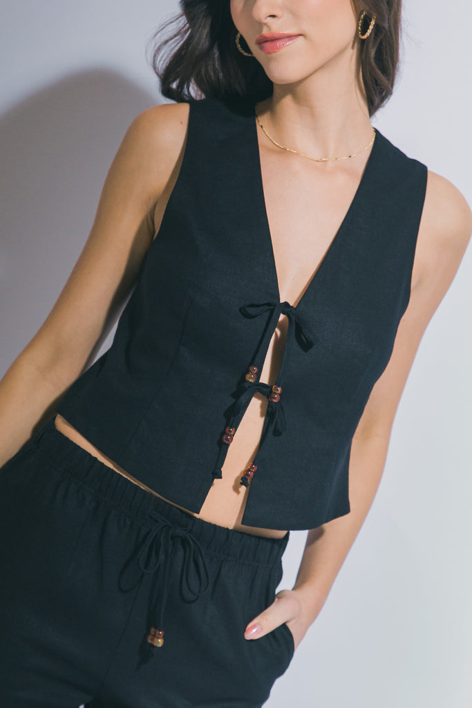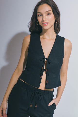 Chaleco de Lino con Lazada Frontal - Ropa Veraniega Transpirable