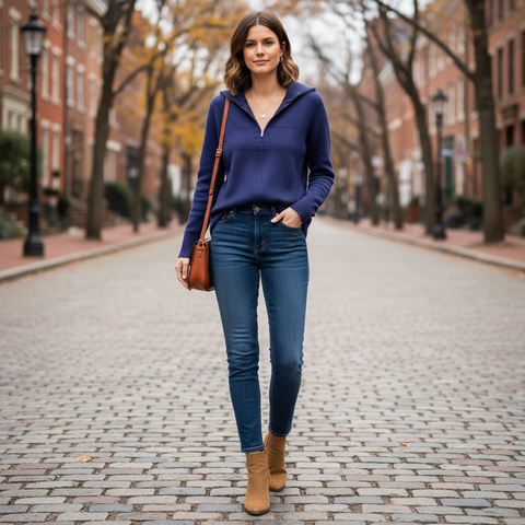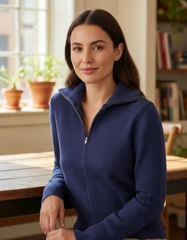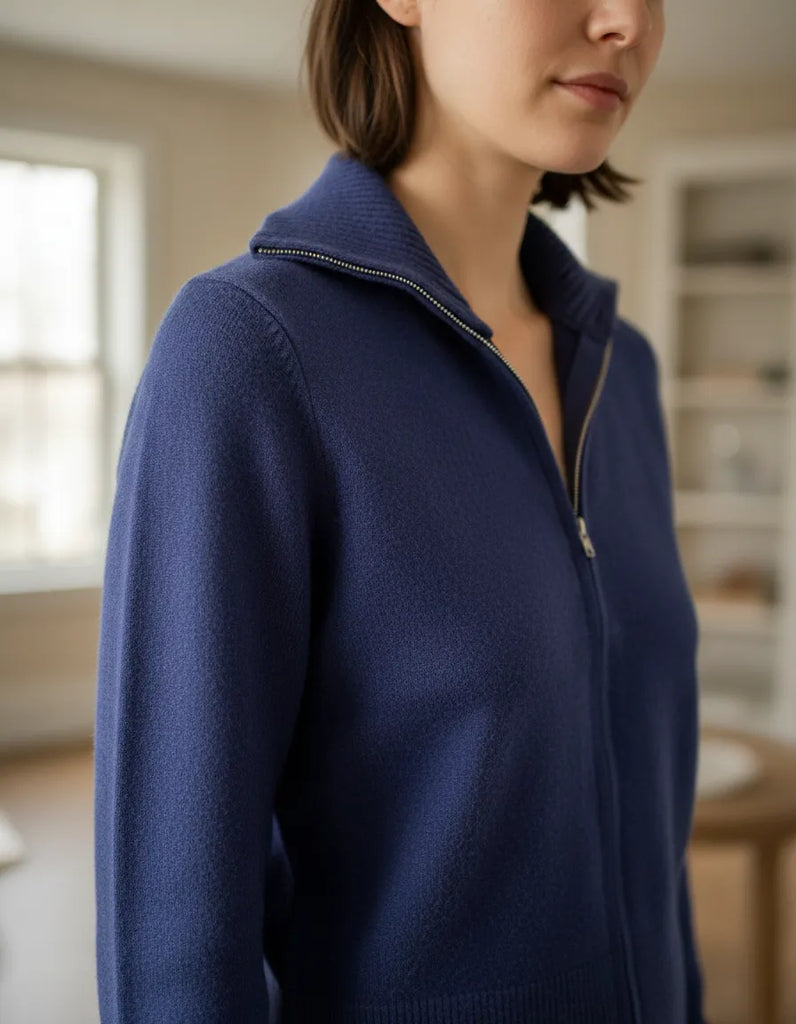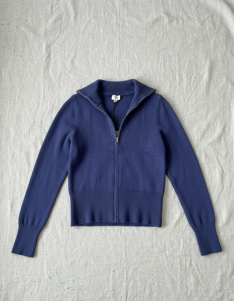 Suéter azul crew neck zipper