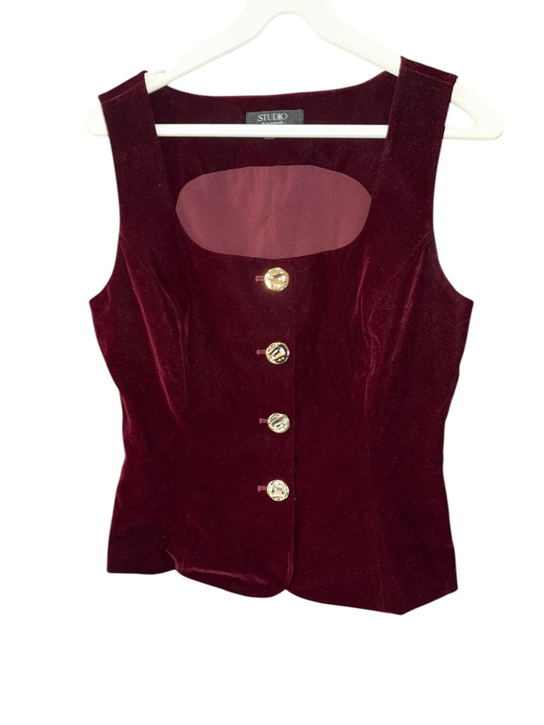 Chaleco Top Rojo Terciopelo Botones Dorados