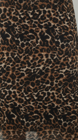 La falda midi Valencia es la prenda statement que necesitas para elevar cualquier outfit. Con estampado de leopardo en tonos cafés y delicado detalle de encaje en el bajo, aporta un toque atrevido y femenino a la vez. Está completamente forrada para mayor comodidad y caída bonita, e incluye cierre oculto en el costado para un acabado limpio y estilizado. Perfecta para combinar con tops satinados, blusas elegantes o playeras gráficas para un look más casual. Ideal para citas, salidas con amigas o eventos de noche donde quieras verte chic, moderna y con mucha actitud.