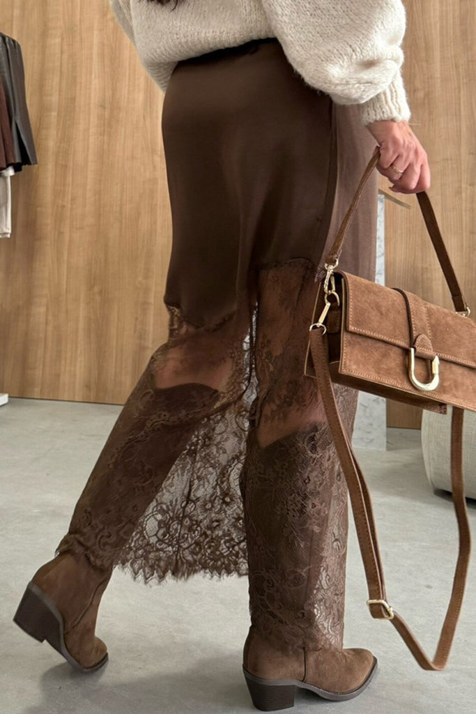 Falda Midi de Encaje Transparente