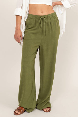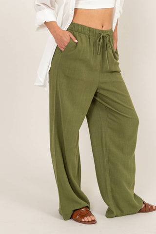 Renueva tu guardarropa con estos elegantes pantalones de lino verde, diseñados para brindar comodidad y estilo en cualquier temporada. Su corte tipo palazzo, amplio y fluido, permite total libertad de movimiento, mientras que la pretina elástica con cordón ajustable asegura un calce perfecto y favorecedor en la cintura.