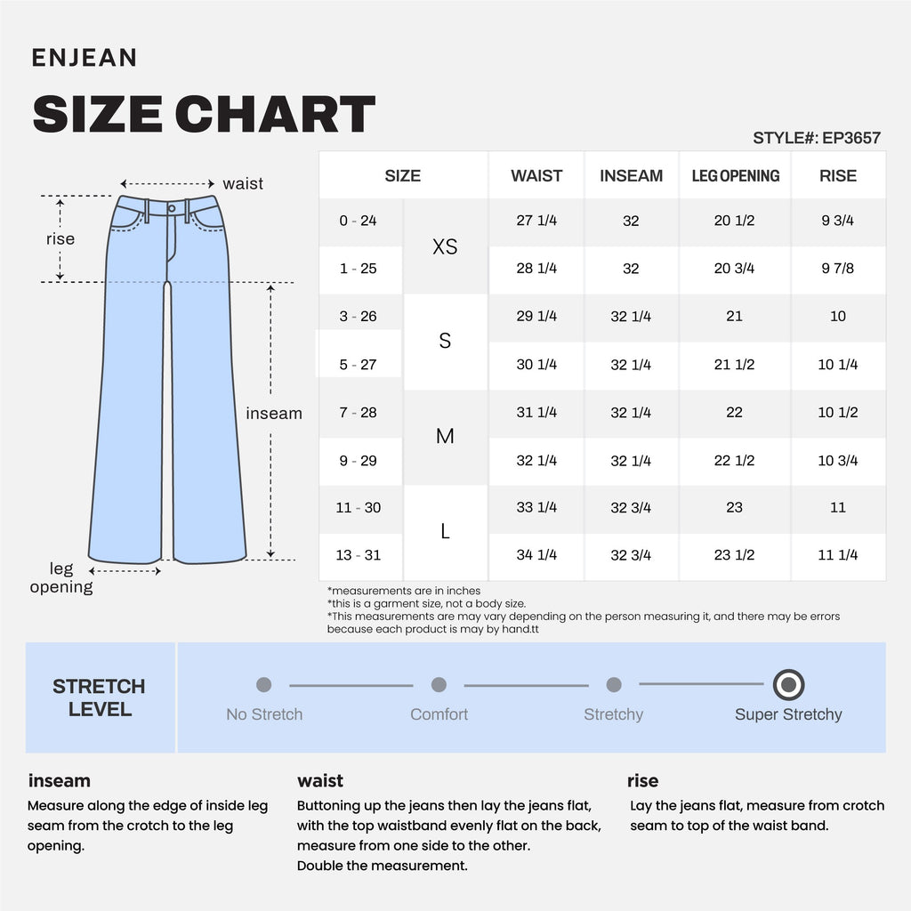 Fit: Relajado con tiro alto (Front Rise: 10") y pierna ancha (Leg Opening: 21"), que ofrecen comodidad y estilo.