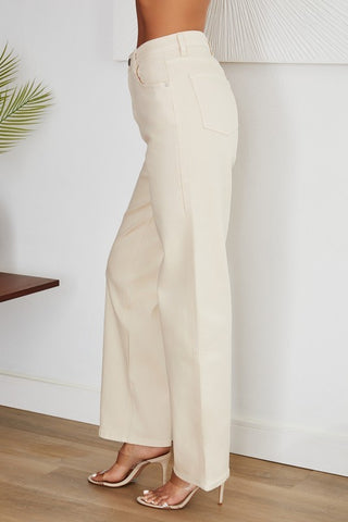 pantalón mujer, pantalón corte recto, pantalón tiro alto, pantalón beige, straight leg pants, pantalón Milio Milano, outfit elegante, outfit casual, pantalón con cierre, ropa femenina.