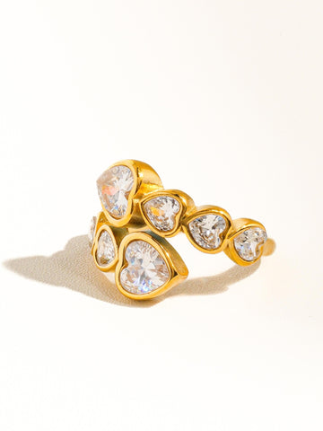 18K Gold Non-Tarnish Rhinestone Heart Ring 18K Gold Plated Stainless Steel Size 7 Measurement: 0.682 Diameter/2.14 Circumference
