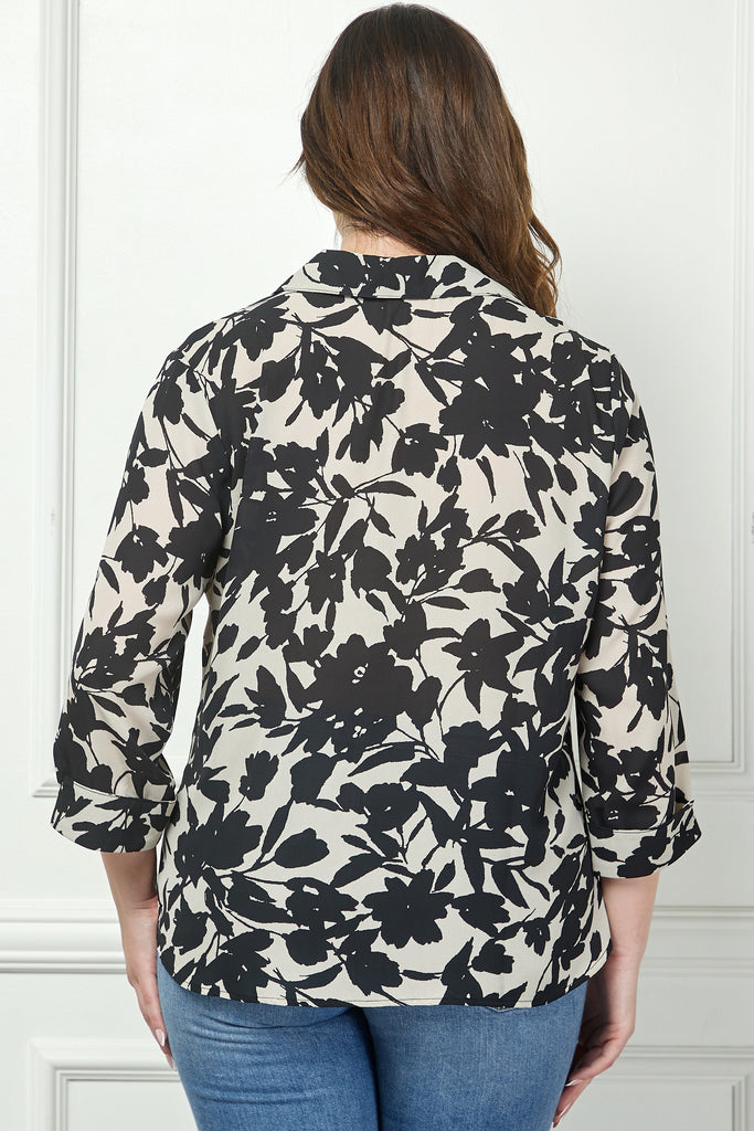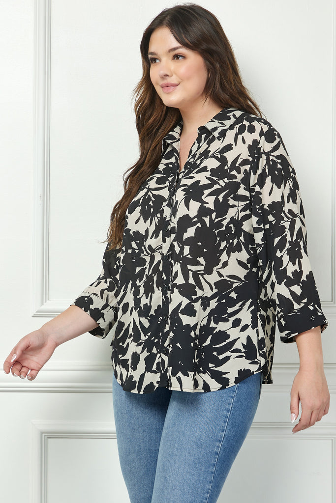 Camisa de Talla Grande con Cuello Johnny y Botones Frontales