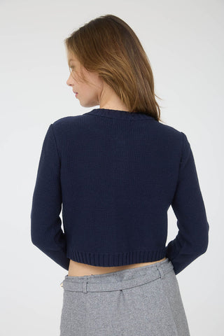 Descubre la elegancia de nuestro cárdigan de punto para dama, perfecto para la mujer moderna en México. Confeccionado en una suave mezcla de 60% algodón y 40% acrílico, este suéter presenta un diseño de cuello redondo y mangas largas, adornado con detalles de botones dorados y bolsillos funcionales con botón. Su corte crop y ajuste confortable lo hacen ideal para cualquier ocasión, brindando un look chic y versátil.