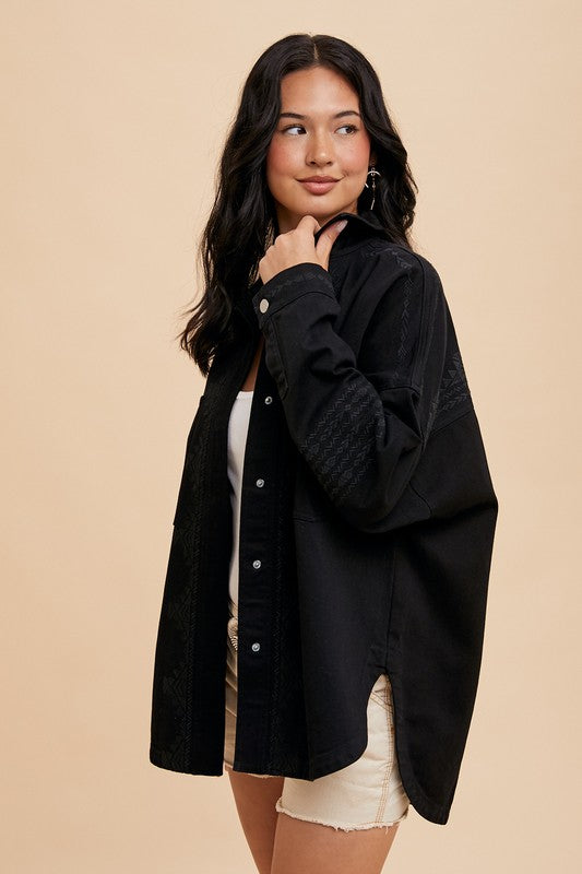 Diseño de chamarra utility con sutil bordado tono sobre tono en mangas, placket y espalda. Cuenta con doble bolsillo de pecho y cierre de broches metálicos. El fit perfecto para un look casual y moderno. Ideal para usar en climas cálidos. Materiales de alta calidad para mayor durabilidad.