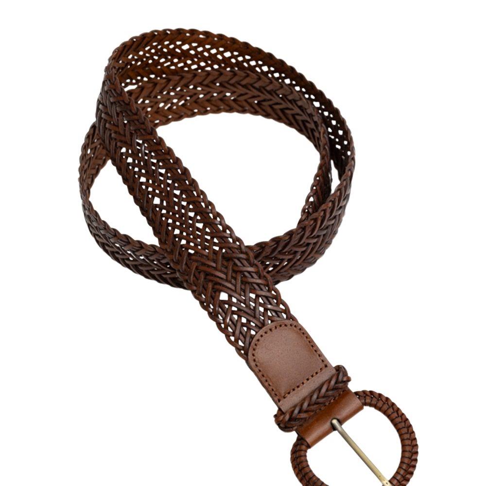 Eleva tu estilo con este cinturón trenzado de cuero sintético. Su diseño tejido y hebilla redonda añaden un toque de sofisticación a cualquier conjunto.