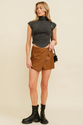 Minifalda-Short de Piel Sintética Tachonada Negra CP11224