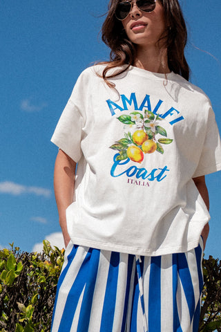 Sumérgete en el estilo vibrante de limones y letras llamativas con esta camiseta Playera gráfica de la Costa Amalfi. Fabricada con una mezcla suave de 95% algodón y 5% elastano, brinda un ajuste ligero y elástico para una comodidad excepcional durante todo el día. Perfecta para un look casual y cómodo, o para un estilo de resort exclusivo. - Ofrece un ajuste extragrande para una silueta relajada. - Presenta un estampado colorido de la costa de Amalfi junto con una ilustración vibrante de limón. - La mezcla de poliéster y elastano proporciona una sensación ligera, transpirable y flexible. - Su escote redondo y las mangas cortas permiten un uso versátil y elegante. 95% algodón