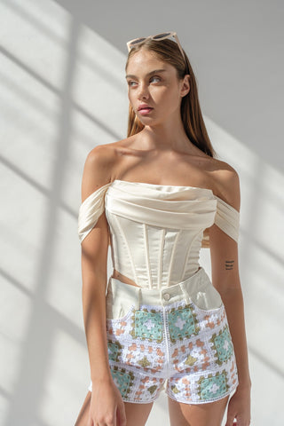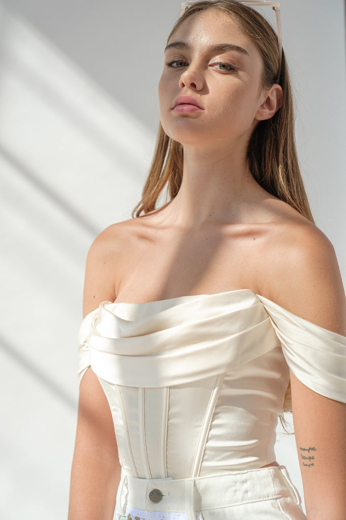 La modelo mide 1.73 m (5'8") y usa una talla S