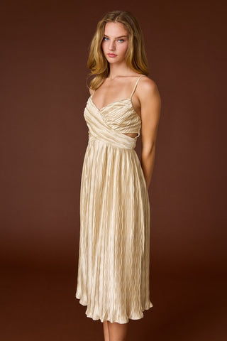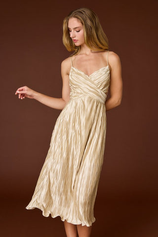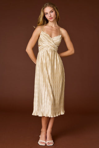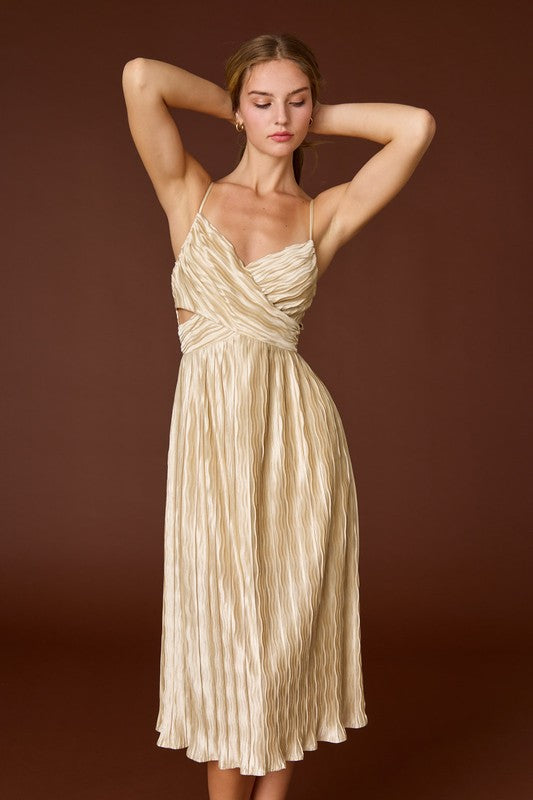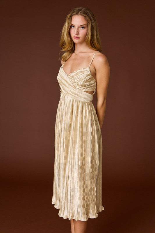 Vestido Midi Tirantes con Detalle Envolvente Tela Plisada