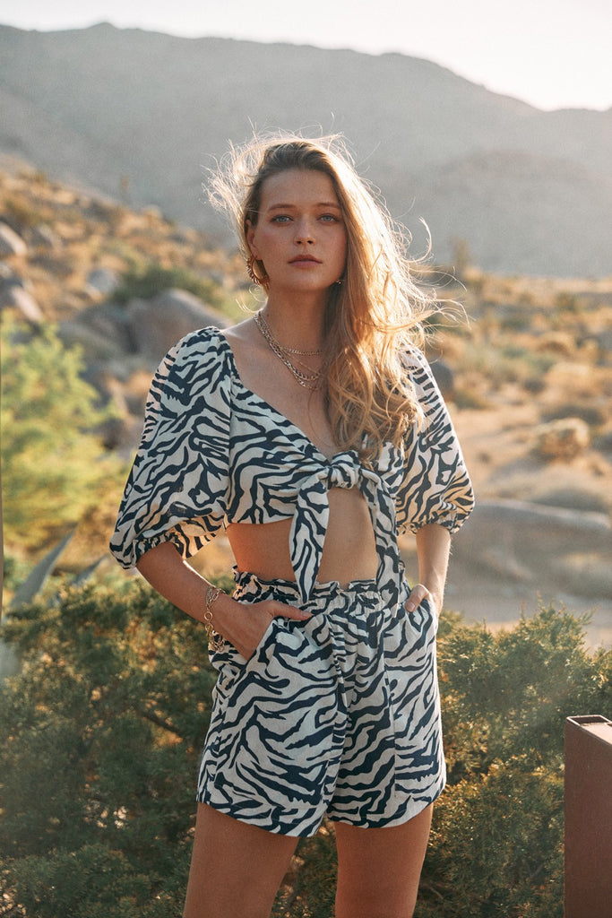 Top con diseño de envoltura frontal y mangas abullonadas. Material: 100% Poliéster.