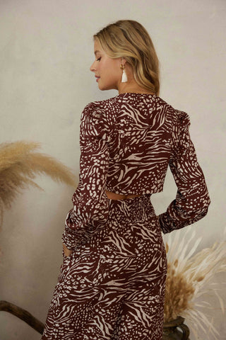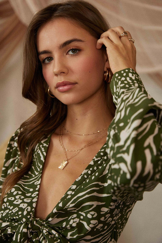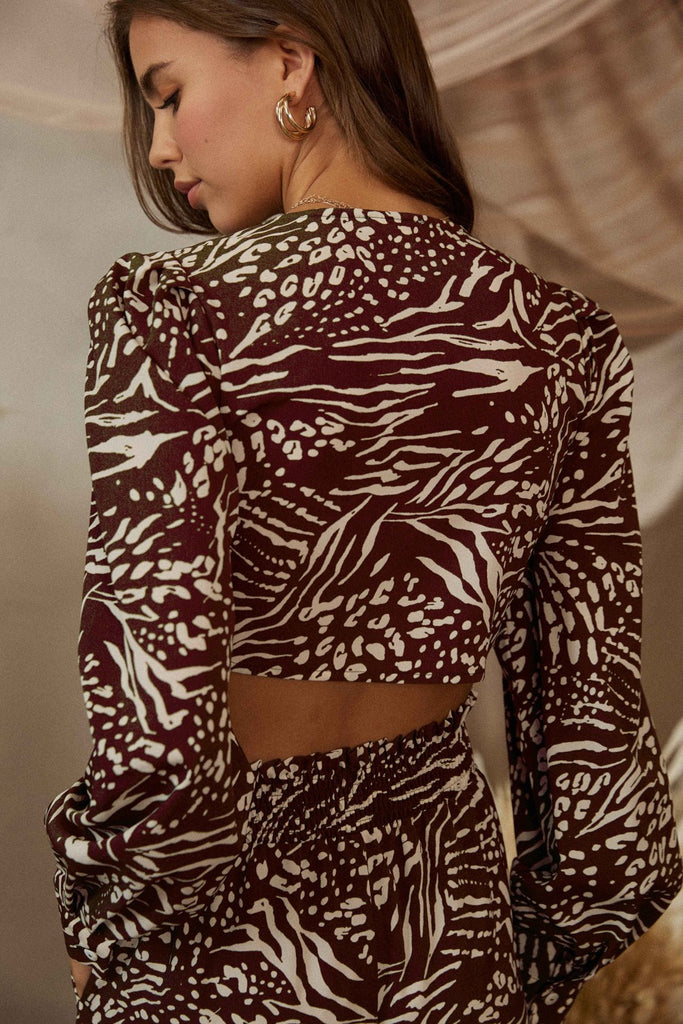 Top con diseño de envoltura frontal y mangas abullonadas. Material: 100% Poliéster.