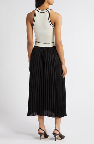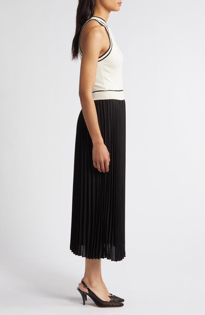 Vestido Maxi Blanco con Negro Sin Mangas