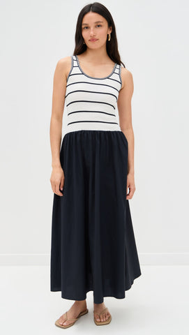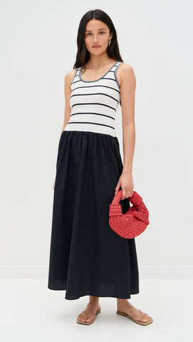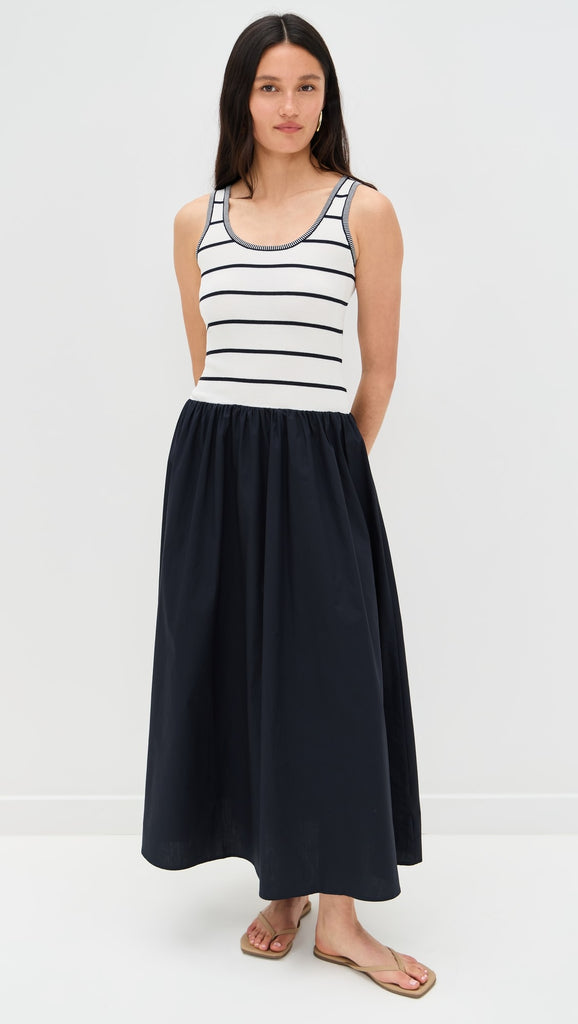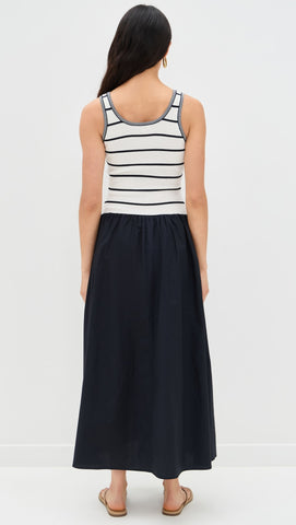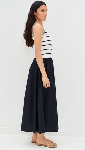Vestido Blanco A Rayas Falda en A en Azul Marino