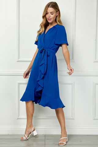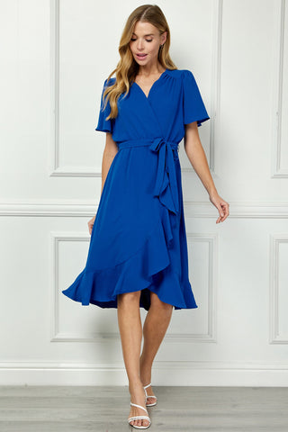 El VESTIDO CLÁSICO ELEGANCIA FAUX WRAP es una incorporación atemporal a tu guardarropa. Con un escote cruzado y un favorecedor diseño cruzado simulado, este vestido midi ofrece una sofisticación sin esfuerzo para cualquier ocasión. Sus mangas cortas y corte entallado crean un look pulido que es a la vez cómodo y chic. Perfecto para días de trabajo, eventos especiales o salidas casuales, esta pieza versátil asegura que siempre saldrás con estilo.